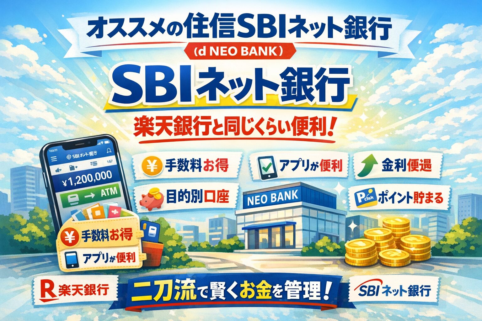 SBIネット銀行(d NEO BANK)は、楽天銀行と同じくらい使いやすいネット銀行です。